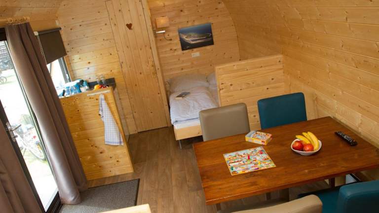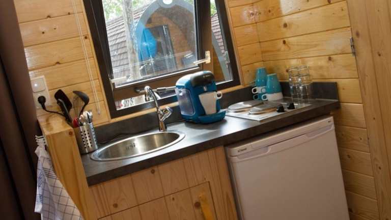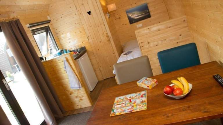 Das Ferienhaus verfügt über ein Wohnzimmer sowie eine voll ausgestattete Küchenzeile mit Kühlschrank und Herdplatte. Zur technischen Ausstattung gehört ein Flachbild-TV.
