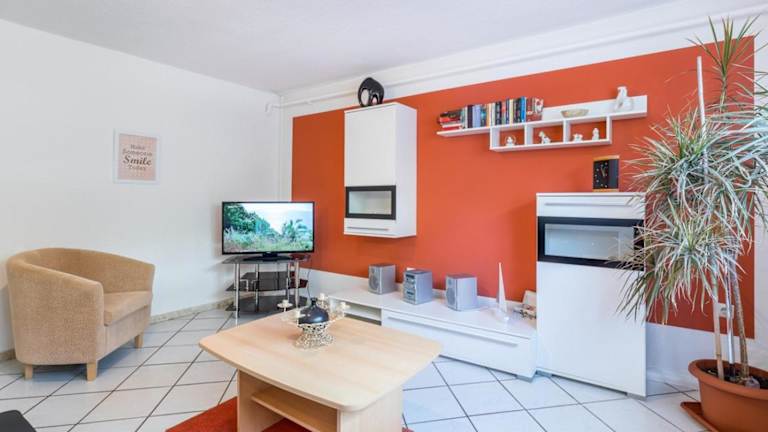 Die Ferienwohnung verfügt über ein Schlafzimmer und ein Badezimmer. Zur Ausstattung gehören Bettwäsche, Handtücher, ein Flachbild-TV, ein Essbereich und eine voll ausgestattete Küche. Eine Terrasse mit Blick auf den Garten lädt zum Verweilen ein. Die Unterkunft bietet zudem einen eigenen Zugang mit Schlüssel und zusätzliche Annehmlichkeiten wie Heizung und Rauchmelder.