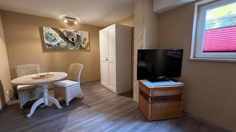 Die Ferienwohnung umfasst ein Schlafzimmer, ein Wohnzimmer sowie eine voll ausgestattete Küche mit Kühlschrank und Kaffeemaschine. Das Badezimmer ist mit einer Dusche und einem Haartrockner ausgestattet. Handtücher und Bettwäsche werden bereitgestellt. Die Zimmer sind schallisoliert und Nichtraucherzimmer.