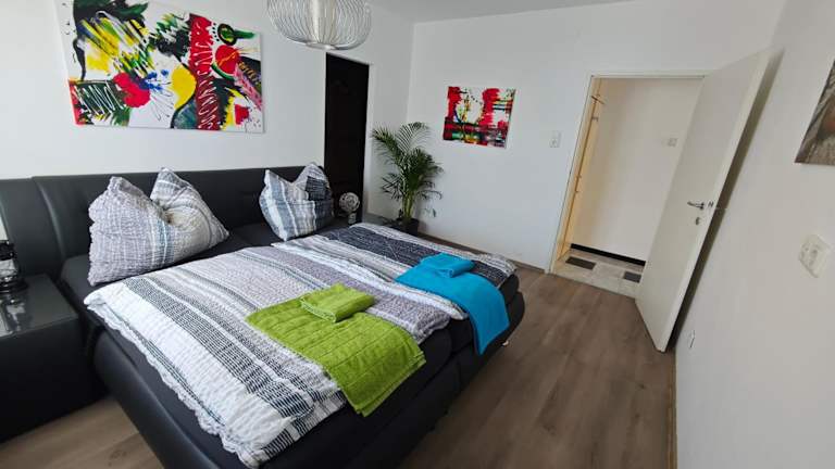 Die Wohnung ist ausgestattet mit 3 Schlafzimmern, einem Badezimmer, Bettwäsche, Handtüchern, einem Flachbild-TV und einer voll ausgestatteten Küche.