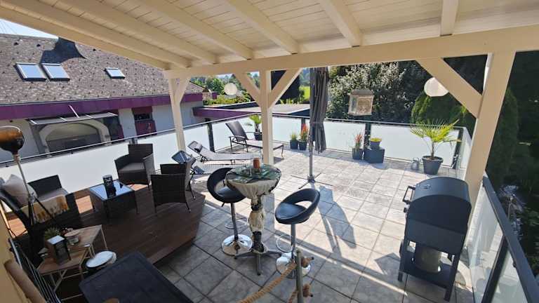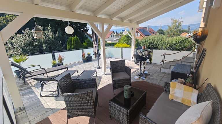 Die Unterkunft Großzügige Wohnung mit Terrasse bietet eine großzügige Raumaufteilung und umfasst 3 Schlafzimmer sowie ein Badezimmer. Zudem steht den Gästen eine Terrasse mit Gartenblick zur Verfügung.