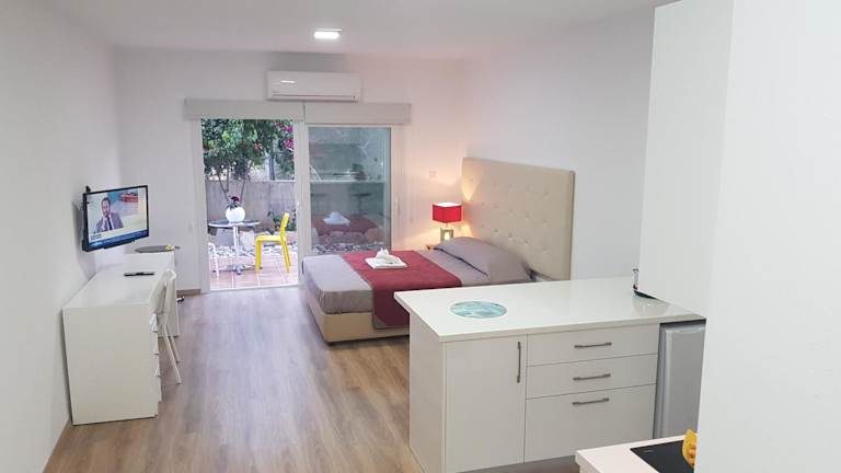 Das Ground Floor Studio in Paphos City ist eine ideale Unterkunft für alle, die im Zentrum von Paphos wohnen möchten. Mit einem Außenpool, einem Garten und kostenfreiem WLAN bietet das Studio alles, was man für einen angenehmen Aufenthalt benötigt. Das klimatisierte Apartment verfügt über ein Schlafzimmer, ein Wohnzimmer und eine voll ausgestattete Küche. Beliebte Sehenswürdigkeiten wie die städtischen Bäder von Paphos und die Strände Vrisoudia, SODAP und Lighthouse sind in der Nähe.