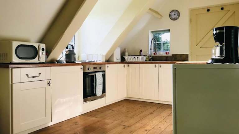 Das Apartment im Grove Farm Loft Annexe verfügt über ein gemütliches Schlafzimmer, ein modernes Bad und eine gut ausgestattete Küche. Handtücher und Bettwäsche werden gestellt und ein Flachbild-TV sorgt für Unterhaltung. Von der Terrasse aus genießen Sie einen schönen Blick auf den Garten.