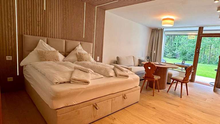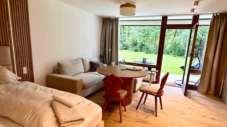 Essenlieferung in die Unterkunft ist möglich, jedoch keine weiteren spezifischen Verpflegungsmöglichkeiten angegeben. Abstandsregeln werden in den Essbereichen eingehalten und Handdesinfektionsmittel stehen zur Verfügung.