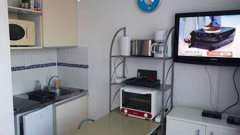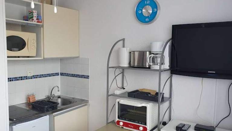 Das Apartment im Gruissan Studio aux Amarines au bord de la plage du Grazel verfügt über ein gemütliches Schlafzimmer, in dem Sie sich nach einem ereignisreichen Tag entspannen können. Das Apartment ist mit einem Flachbild-TV ausgestattet und verfügt über eine praktische Küchenzeile mit Kühlschrank und Backofen. Das Badezimmer ist mit einer Badewanne ausgestattet. Genießen Sie den Komfort und die Annehmlichkeiten des Apartments während Ihres Aufenthalts.