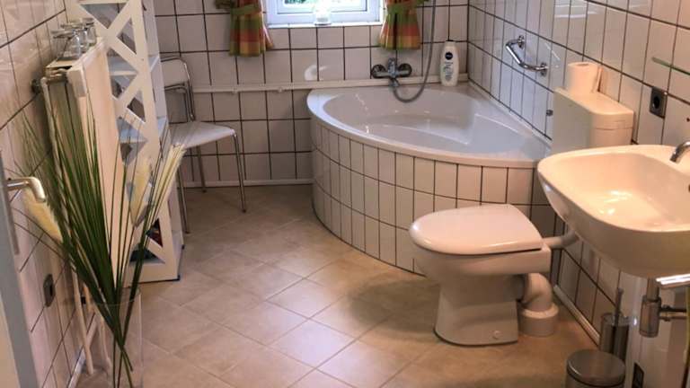 Die Ferienwohnung umfasst ein Schlafzimmer, ein Wohnzimmer, einen Flachbild-TV und eine gut ausgestattete Küchenzeile mit Kühlschrank und Geschirrspüler. Des Weiteren sind ein Badezimmer mit Badewanne sowie Handtücher und Bettwäsche vorhanden.