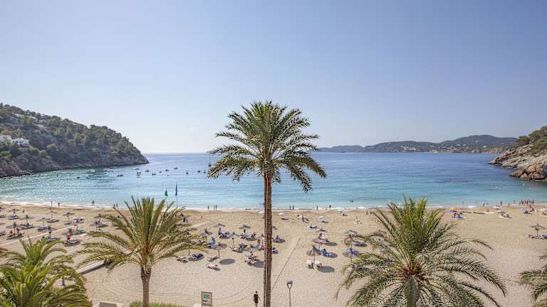 Das Hotel befindet sich im Nordosten Ibizas in der ruhigen Bucht Cala San Vicente mit direktem Zugang zum Strand. In der Umgebung sind kleine Geschäfte vorhanden. Der Flughafen ist ca. 40 km entfernt, Santa Eularia liegt in etwa 12 km Entfernung. Die Bucht bietet Tauchgelegenheiten und hat einen Sandstrand mit Liegen und Sonnenschirmen gegen Gebühr.