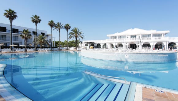 Die Ferienanlage Grupotel Mar de Menorca liegt nur 200 m vom Strand Cala Canutells im südlichen Menorca entfernt. In der Umgebung gibt es verschiedene Strände, die bequem mit dem hoteleigenen Shuttlebus erreicht werden können. Die Inselhauptstadt Mahon ist etwa 10 km entfernt und bietet eine pittoreske Altstadt sowie vielfältige Einkaufs- und Unterhaltungsmöglichkeiten. Supermärkte befinden sich in unmittelbarer Nähe der Anlage.