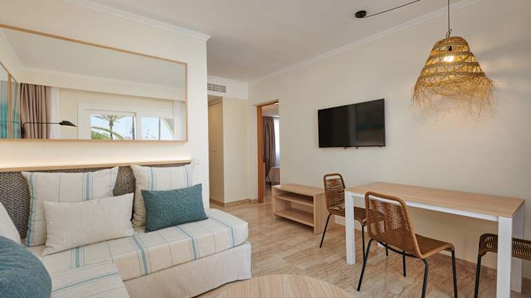 Die Ferienanlage bietet insgesamt 256 Apartments und 22 Studios, die sich in einem 2-stöckigen Haupthaus und 10 Nebengebäuden befinden. Die Apartments sind geräumig und verfügen über separate Schlafzimmer, eine Kochnische und ein Badezimmer. Zur Ausstattung gehören unter anderem eine Klimaanlage, ein Balkon, ein Sofa, ein Telefon, ein TV-Gerät mit Satelliten-/Kabelempfang, ein Safe, eine Mikrowelle, eine Tee-/Kaffeemaschine und WLAN. Einige Badezimmer sind barrierefrei.