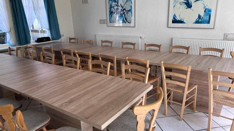 Das Gruppenhaus bis 30 Personen im Südharz bietet eine geräumige Unterkunft mit Gartenblick. Die durchdachte Raumaufteilung umfasst 9 separate Schlafzimmer und 6 Badezimmer. Die voll ausgestattete Küche mit Essbereich sowie das Wohnzimmer mit Flachbild-TV gewährleisten einen angenehmen Aufenthalt. Des Weiteren stehen den Gästen eine Terrasse und ein Balkon zur Verfügung. Die Unterkunft ist ideal für Gruppen und Familien geeignet.