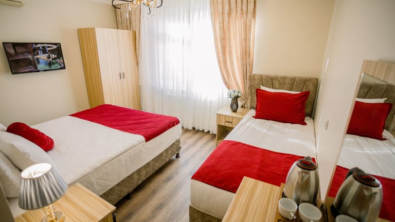 Die klimatisierten Zimmer im Gülec Konak Hotel sind komfortabel und gemütlich eingerichtet. Jedes Zimmer verfügt über einen Schreibtisch, einen Wasserkocher, einen Kühlschrank, einen Safe, einen Flachbild-TV und ein eigenes Badezimmer mit Dusche. Für zusätzlichen Komfort gibt es auch einen Kleiderschrank, in dem Sie Ihre Kleidung und persönlichen Gegenstände aufbewahren können.
