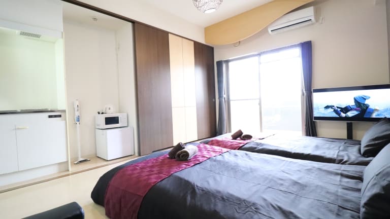 Das klimatisierte Apartment im Guest House HARU DREAM NIPPONBASHI verfügt über ein Schlafzimmer, ein Wohnzimmer, eine voll ausgestattete Küche mit Kühlschrank und ein Badezimmer mit Bidet und Haartrockner. Das Apartment ist geräumig und bietet allen Komfort, den man für einen angenehmen Aufenthalt benötigt. Handtücher und Bettwäsche werden gestellt, um den Gästen einen komfortablen Aufenthalt zu gewährleisten.