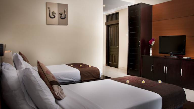 Die Zimmer im Puri Sindhu Mertha Suite sind gemütlich eingerichtet und verfügen über einen Flachbild-TV und ein eigenes Bad mit einer eingelassenen Badewanne. Die Teakholzmöbel verleihen den Zimmern eine warme und einladende Atmosphäre. Jedes Zimmer ist zudem mit einer Klimaanlage und einem Minikühlschrank ausgestattet.