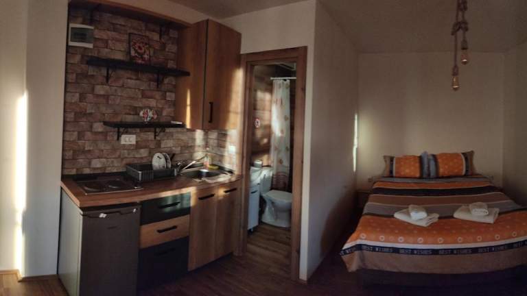 Die Zimmer im Guest House Stevovski sind komfortabel und gemütlich eingerichtet und verfügen über eine Küche, in der Sie Ihre eigenen Mahlzeiten zubereiten können. Jedes Zimmer ist mit einem Flachbild-Kabel-TV und einem eigenen Bad ausgestattet. Ein Balkon bietet Ihnen die Möglichkeit, die frische Luft und den Blick auf die Umgebung zu genießen. Ein Kühlschrank steht ebenfalls zur Verfügung, um Ihre Getränke und Lebensmittel kühl zu halten.