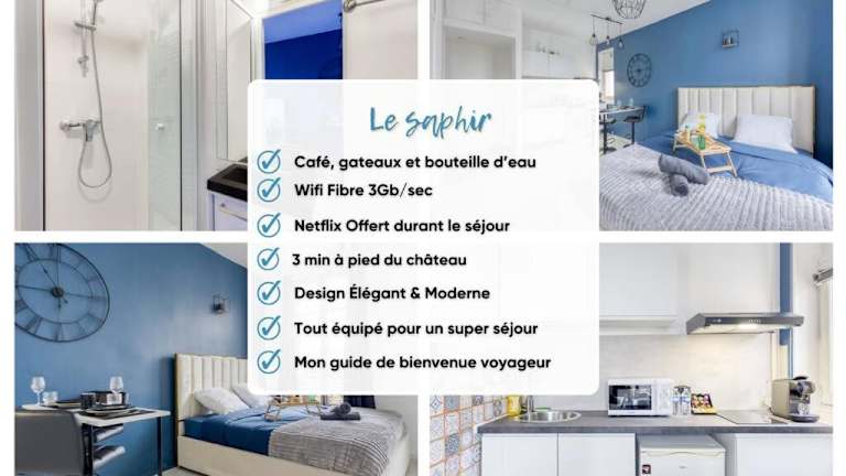 Das Guest loc-Le Saphir-3min château bietet Übernachtungsmöglichkeiten in einer Ferienwohnung, die ein Schlafzimmer, eine voll ausgestattete Küche und ein Badezimmer umfasst. Es handelt sich um eine Nichtraucherunterkunft, die über kostenfreies WLAN und einen Flachbild-TV verfügt.