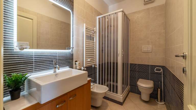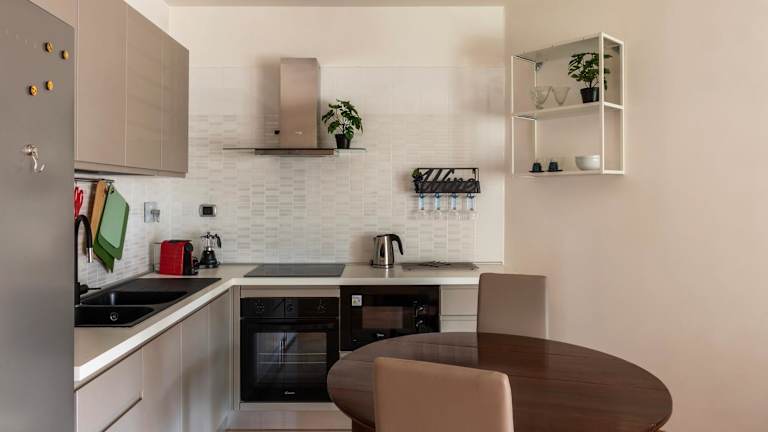 Die Ferienwohnung umfasst ein Schlafzimmer, ein Wohnzimmer und eine voll ausgestattete Küche mit Kühlschrank und Kaffeemaschine. Das Badezimmer ist mit einem Bidet und einer Dusche ausgestattet. Handtücher und Bettwäsche werden bereitgestellt.