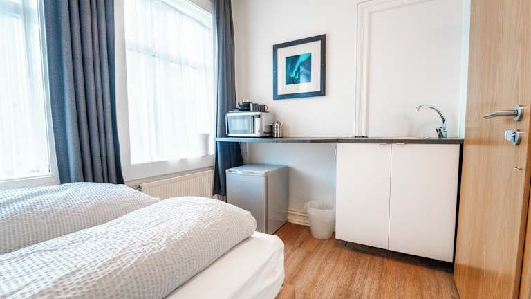 Das Guesthouse Andrea liegt nur 10 Gehminuten vom Stadtzentrum von Reykjavík entfernt, was es zu einer idealen Ausgangsbasis für die Erkundung der Stadt macht. In der Nähe finden Sie auch das berühmte geothermale Spa Blue Lagoon, das Sie in nur 45 Fahrminuten erreichen können. Das Guesthouse bietet auch eine gute Anbindung an öffentliche Verkehrsmittel, so dass Sie bequem andere Sehenswürdigkeiten der Stadt erreichen können, wie das Einar-Jónsson-Museum und das Nationalmuseum von Island. Der internationale Flughafen Keflavík ist ebenfalls gut erreichbar.