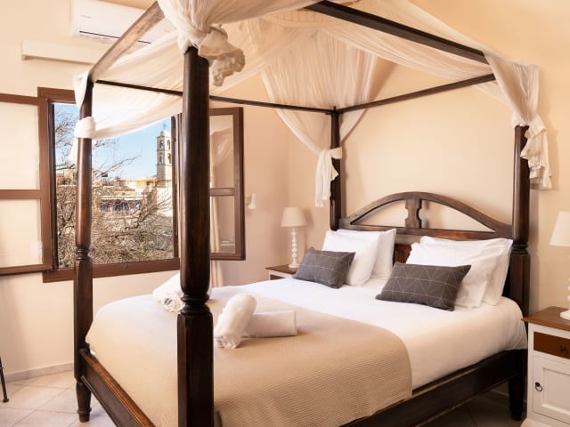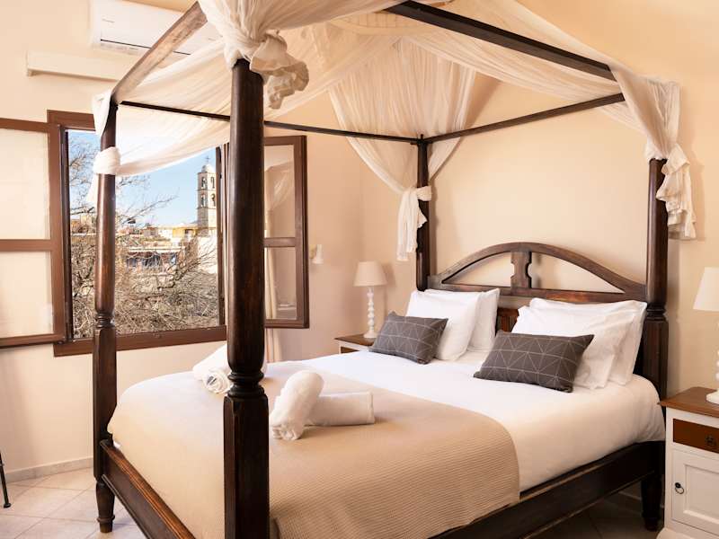 Das Santa Elena Boutique Rooms befindet sich in einem historischen venezianischen Gebäude aus dem 15. Jahrhundert, direkt im Zentrum der Altstadt von Chania. Die Lage ist ideal, um die charmante Atmosphäre der Stadt zu erleben und die Sehenswürdigkeiten und Annehmlichkeiten der Umgebung zu erkunden. Das Hotel liegt neben dem alten Hafen, der einen besonderen Reiz bietet. Von der Unterkunft aus haben Sie einen seitlichen Blick auf das kretische Meer oder einen Blick auf die malerischen Gassen der Stadt. In unmittelbarer Nähe finden Sie eine Vielzahl von kretischen Restaurants, Bars und Geschäften. Der Bus zu den nahe gelegenen Stränden und Dörfern hält nur 500 m entfernt. Der Flughafen Chania ist ebenfalls gut erreichbar und liegt etwa 16 km entfernt.