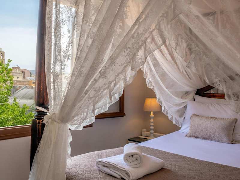 Das Santa Elena Boutique Rooms ist eine charmante Unterkunft in einem venezianischen Gebäude im Herzen der Altstadt von Chania. Hier können Sie authentisches kretisches Flair erleben und die malerische Umgebung genießen. Das familiengeführte Hotel bietet komfortable Zimmer mit seitlichem Meerblick oder Stadtblick. WLAN ist in allen Bereichen verfügbar und die Terrasse bietet einen herrlichen Ausblick auf das kretische Meer und die Gassen der Stadt. Die zentrale Lage ermöglicht es Ihnen, die nahe gelegenen Strände, Restaurants, Bars und Geschäfte bequem zu erreichen. Ein kostenloser öffentlicher Parkplatz befindet sich in der Nähe und der Flughafen Chania ist nur 16 km entfernt.