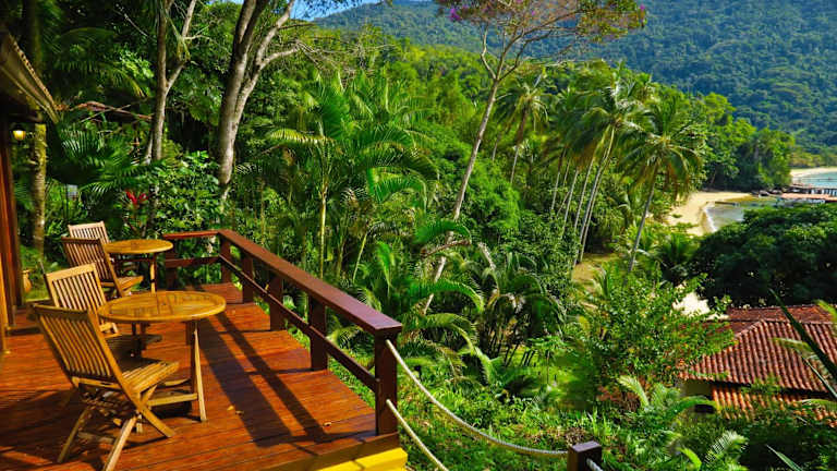 Die Atlantica Jungle Lodge liegt nur 10 Gehminuten vom wunderschönen Strand Lopes Mendes entfernt. Von der Terrasse aus haben Sie einen atemberaubenden Panoramablick auf das Meer. Die Pension befindet sich etwa 2 Stunden zu Fuß von Vila do Abraão entfernt, wo Sie den Pier Cais da Villa, Restaurants und Bars finden. Auf der Insel Ilha Grande sind Autos nicht erlaubt, daher werden alle Sehenswürdigkeiten zu Fuß oder mit dem Boot erreicht.