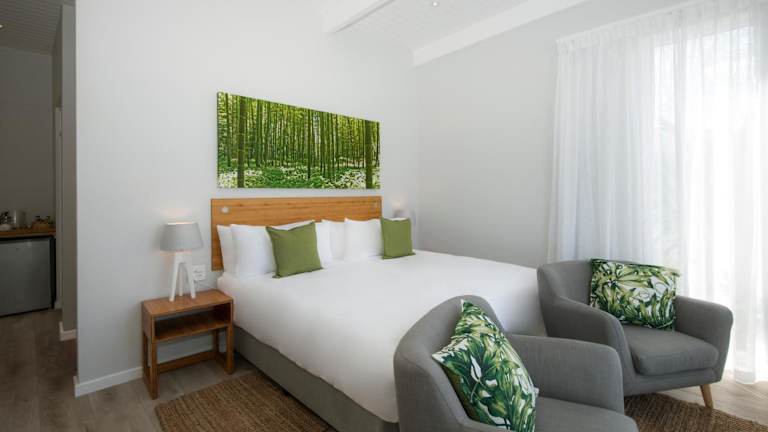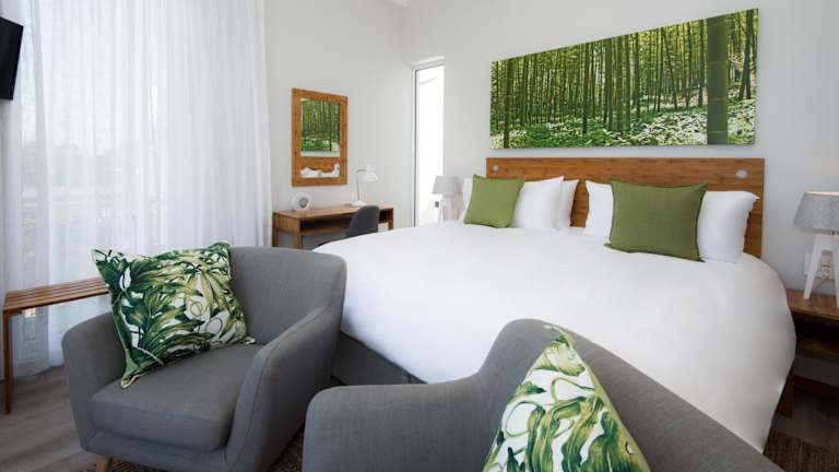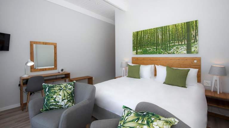 Die Zimmer sind modern eingerichtet und bieten Ausblicke auf den Garten, die Berge oder das Meer. Jedes Zimmer ist mit einem Flachbild-Sat-TV, einem Sitzbereich sowie einem Schreibtisch ausgestattet.