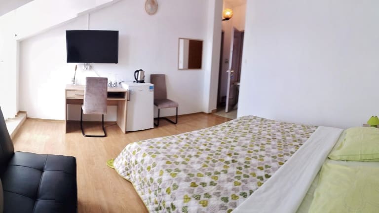 In der Nähe des Guesthouse Cecilia gibt es einen Strand mit Heilschlamm, der sich perfekt für Entspannung und Wohlbefinden eignet. Darüber hinaus können Sie die Biserujka-Höhle erkunden, die nur 12 km entfernt liegt und faszinierende Einblicke in die natürliche Schönheit der Region bietet. Nutzen Sie die Privatparkplätze der Unterkunft, um bequem die Umgebung zu erkunden und die Sehenswürdigkeiten zu entdecken.