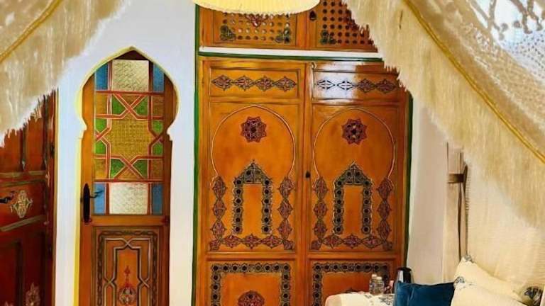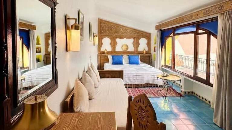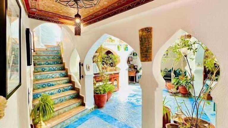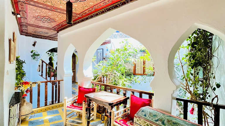 Das Hotel Dar Meziana in Chefchaouen bietet Ihnen einen authentischen Aufenthalt in einem traditionellen Riad. Genießen Sie den Panoramablick auf das Rifgebirge von der Dachterrasse aus und erkunden Sie die nahe gelegenen Wasserfälle von Ras El Ma. Die Zimmer sind traditionell eingerichtet und bieten kostenfreies WLAN. Lassen Sie sich lokale Spezialitäten im Speisesaal schmecken und starten Sie den Tag mit einem traditionellen Frühstück auf der Terrasse.