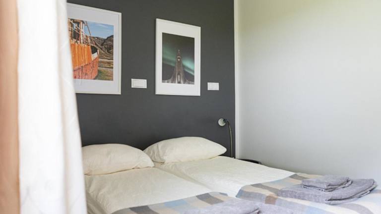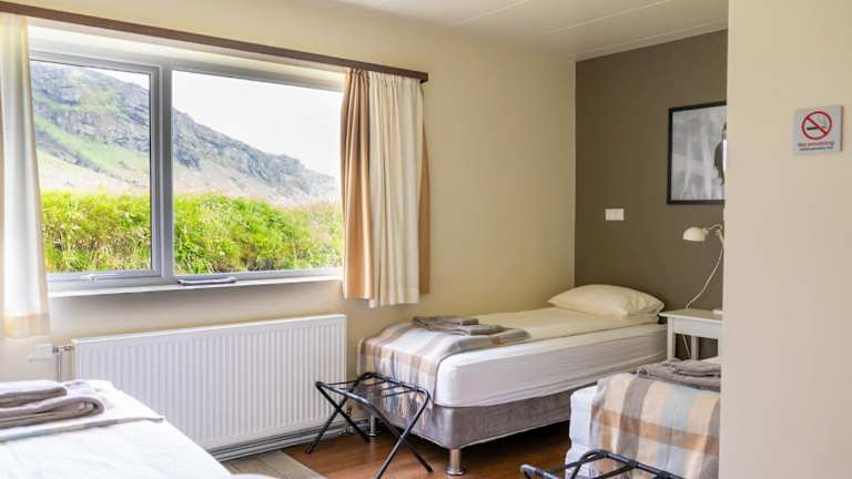 Die Zimmer im Hotel Drangshlid sind komfortabel und bieten eine gemütliche Sitzecke sowie ein eigenes Bad. Von den Zimmern aus haben Sie einen herrlichen Blick auf die umliegende Landschaft. Das Hotel besteht aus drei separaten Gebäuden und bietet eine angenehme Atmosphäre.