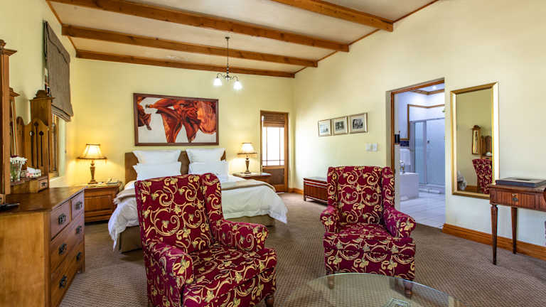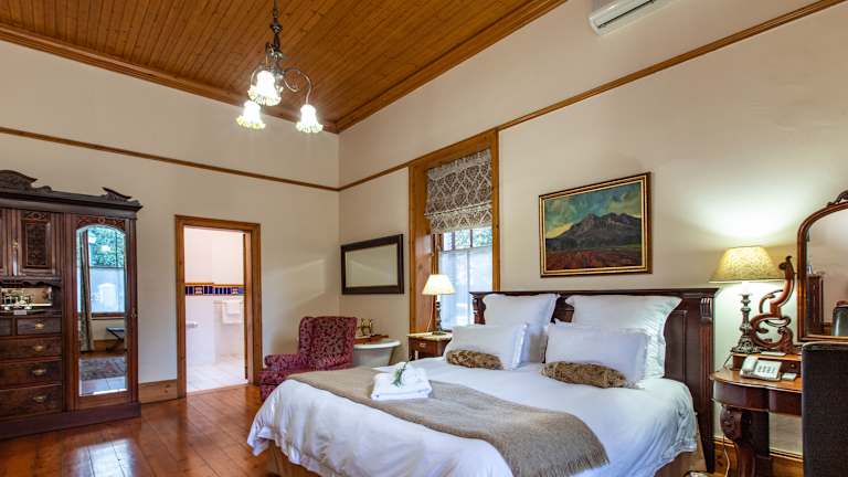 Das Evergreen Manor and Spa in Stellenbosch ist ein luxuriöses Gästehaus, das im Herzen der südafrikanischen Weinindustrie liegt. Mit seiner kapholländischen Architektur, dem herrlichen Garten und den erstklassigen Einrichtungen bietet es den Gästen einen stilvollen und erholsamen Aufenthalt. Genießen Sie die traumhafte Aussicht auf die umliegenden Weinberge und Berge, entspannen Sie im Außenpool und gönnen Sie sich eine wohltuende Massage im Spa. Die individuell eingerichteten Zimmer mit antiken Möbeln und modernen Annehmlichkeiten sorgen für einen komfortablen Aufenthalt.