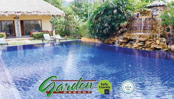 Die Bungalows im Garden Resort sind geräumig und bieten entweder einen Pool- oder Gartenblick. Sie sind mit Bambusmöbeln und warmen Farbtönen eingerichtet und verfügen über Annehmlichkeiten wie einen Flachbild-TV, Video-on-Demand, einen Kühlschrank und ein eigenes Badezimmer mit Mosaiksteinarbeiten. Hier können Sie sich in einer gemütlichen Umgebung wohlfühlen und Ihre Privatsphäre genießen.