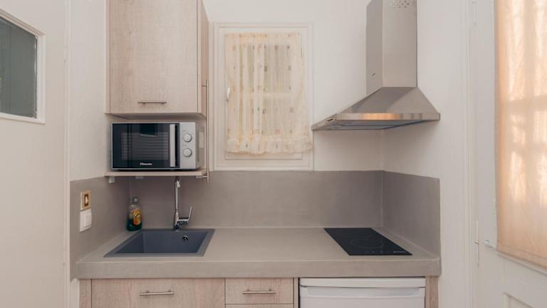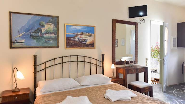 Das Hotel bietet 5 Studios mit einer charmanten und traditionellen Einrichtung im Landhausstil. Jedes Zimmer verfügt über eine Klimaanlage, eine gut ausgestattete Kochnische, einen Kühlschrank, ein Direktwahltelefon und einen Fernseher.