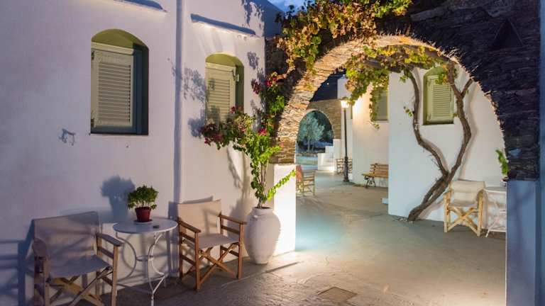 Das Hotel Giannakas Studios liegt in Platis Gialos, einem beliebten und bekannten Strand auf Sifnos. Der Strand ist nur 80 Meter entfernt und bietet eine breite Sandfläche. Apollonia, das malerische Dorf und die Hauptstadt der Insel, erreichen Sie in nur 15 Fahrminuten. Der Hafen von Sifnos ist etwa 16 km entfernt. Es gibt einen regelmäßigen Busservice, der die verschiedenen Orte auf der Insel verbindet.