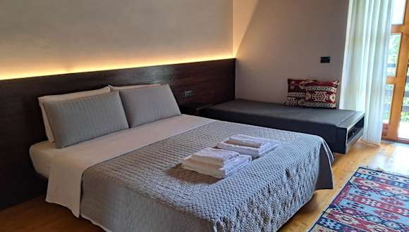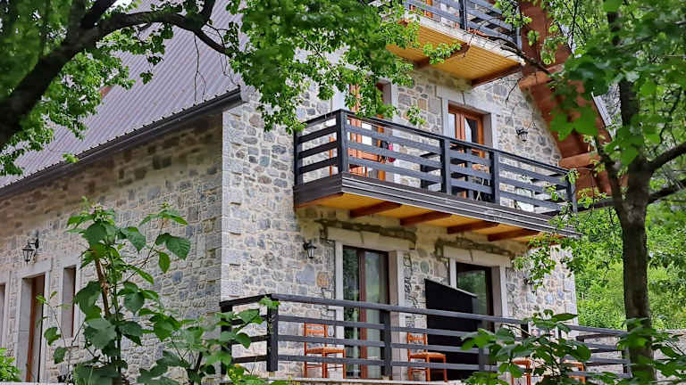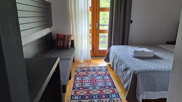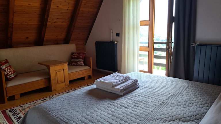 Die Zimmer in der Villa Gjecaj wurden 2016 renoviert und sind schlicht, aber gemütlich eingerichtet. Sie verfügen über Massivholzböden und Holzmöbel. Jedes Zimmer hat ein eigenes Bad mit Dusche. Einige Zimmer bieten zudem einen Balkon mit herrlichem Talblick.