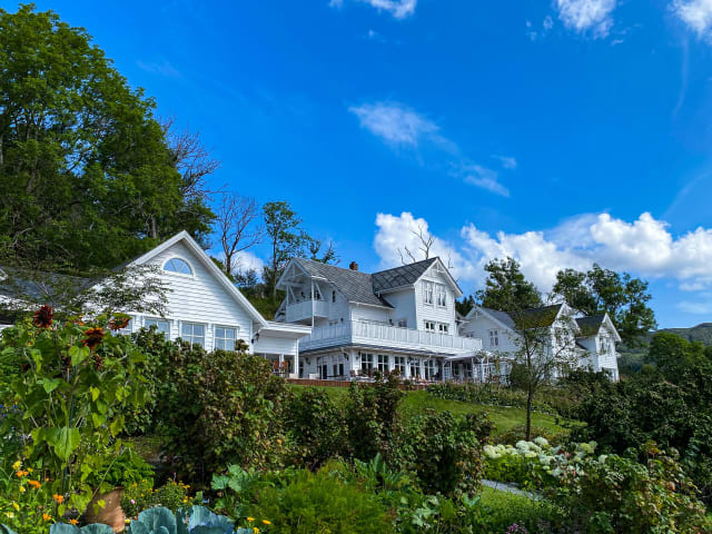 Das Hotel Haaheim Gaard ist ein eleganter Gasthof am Fuße des Berges Tysnessåta, der eine idyllische Lage bietet und nur 40 Autominuten vom Zentrum von Stord entfernt ist. Hier erwartet Sie eine gemütliche Atmosphäre, individuell dekorierte Zimmer und ein Restaurant, das regionale Spezialitäten serviert. Genießen Sie den atemberaubenden Blick auf das Fjord von Ihrem Zimmer aus und entspannen Sie sich in der ruhigen Umgebung. Die Unterkunft bietet auch kostenlose WLAN-Zugang und einen Hofladen, in dem Sie regionale Delikatessen erwerben können.