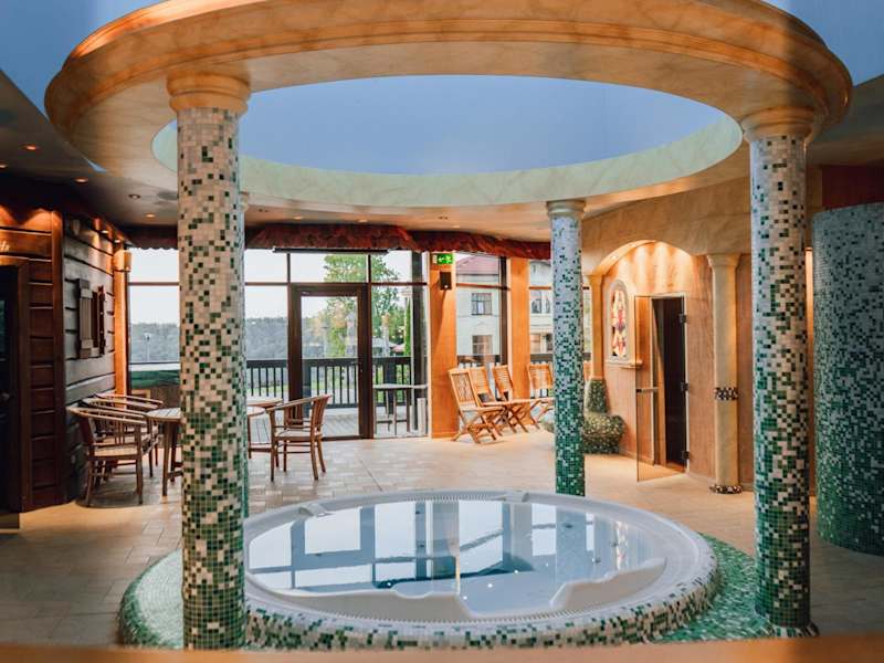 Das Hotel Kaķītis ist eine romantische Pension in Sigulda, nur 2 km vom Stadtzentrum entfernt. Hier können Gäste eine ruhige und entspannte Atmosphäre inmitten einer wunderschönen, naturbelassenen Umgebung genießen. Der Saunakomplex mit verschiedenen Saunen, Whirlpool und Saunabar lädt zu erholsamen Momenten ein. Im nahe gelegenen Erlebnispark auf dem Berg Kaķītis können Gäste im Winter Skifahren und im Sommer eine Vielzahl von Aktivitäten unternehmen. Das hoteleigene Pub bietet das ganze Jahr über schmackhafte Speisen und von der großen Terrasse aus können Gäste den herrlichen Ausblick auf die Umgebung genießen. Ein Ski- und Snowboard-Verleih sowie ein Spielezimmer für Kinder runden das Angebot ab. Die schöne Gegend des Gauja-Tals und die berühmte Bob- und Rodelbahn von Sigulda befinden sich ebenfalls in der Nähe.