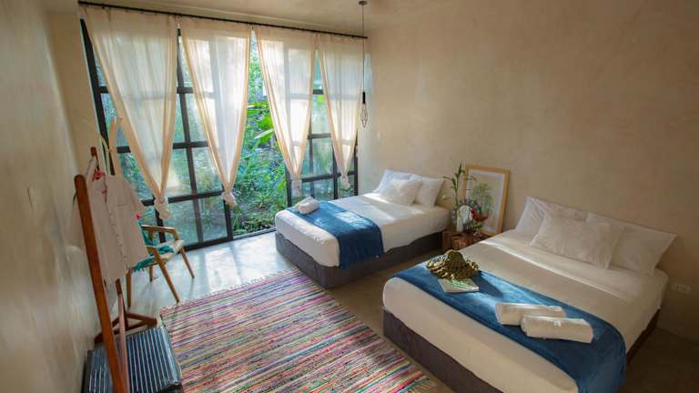 Die Zimmer im Kapievi Ecovillage sind komfortabel und bieten jedem Gast ein eigenes Bad mit kostenlosen Pflegeprodukten. Die Zimmer sind einfach, aber gemütlich eingerichtet und bieten eine angenehme Atmosphäre für einen erholsamen Aufenthalt. Das Frühstück ist im Preis inbegriffen und sorgt für einen guten Start in den Tag.