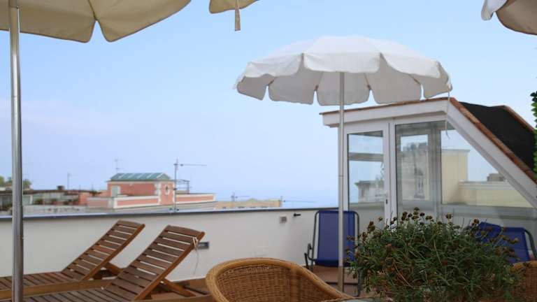 Im Guest House La Piazzetta können Sie auf der Gemeinschaftsterrasse entspannen und den kostenfreien Whirlpool genießen. Lassen Sie den Alltag hinter sich und gönnen Sie sich eine Auszeit in dieser kleinen Oase der Ruhe. Von hier aus können Sie auch die wunderschöne Aussicht auf Capri und die umliegende Landschaft genießen. Wenn Sie sich sportlich betätigen möchten, können Sie die Strände in der Nähe besuchen und dort verschiedene Wassersportaktivitäten ausprobieren. Auch Wanderungen entlang der Küste oder durch die malerischen Gassen von Capri sind sehr zu empfehlen.