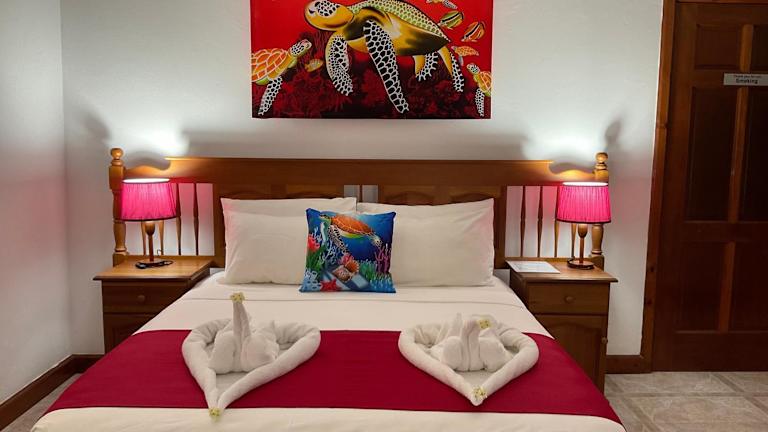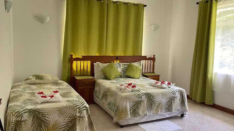 Das Le Chevalier Bay Guesthouse ist eine charmante Unterkunft in Praslin, umgeben von einem Garten und einem See. Die Pension befindet sich direkt am wunderschönen Strand Anse Lazio und bietet eine entspannte Atmosphäre. Genießen Sie den kostenlosen WLAN-Zugang und die klimatisierten Zimmer mit Kühlschrank. Das hauseigene Restaurant serviert köstliche kreolische Küche und die Bar lädt zum Verweilen ein. Mit seiner günstigen Lage erreichen Sie den Flughafen in 35 Fahrminuten und den Bootsanleger in 25 Fahrminuten.