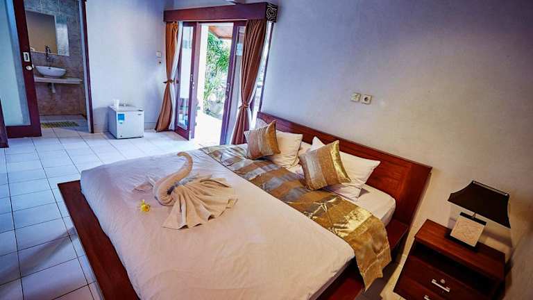 Die Zimmer im Matra Bali Guesthouse sind voll klimatisiert und bieten eine komfortable und gemütliche Atmosphäre. Jedes Zimmer verfügt über einen Flachbild-TV, einen Kleiderschrank, einen Kühlschrank und ein eigenes Badezimmer mit kostenfreien Pflegeprodukten. Die Zimmer sind gut ausgestattet und bieten alles, was Sie für einen angenehmen Aufenthalt benötigen.