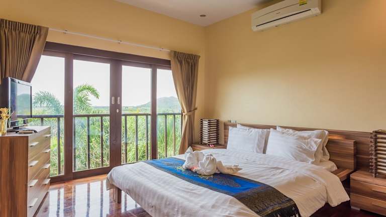 Die Villen in der Pa Prai Villa at The Plantation sind geräumig und elegant eingerichtet. Jede Villa verfügt über einen eigenen Pool, der zum Erfrischen und Entspannen einlädt. Die modernen thailändischen Möbel und die raumhohen Fenster verleihen den Villen eine stilvolle Atmosphäre. Zur Ausstattung gehören ein Wohnbereich, ein Flachbild-Kabel-TV und eine Badewanne.