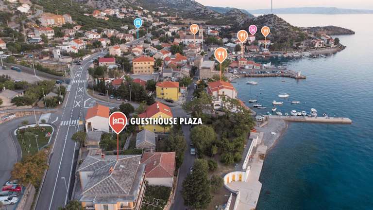 Das Guesthouse Plaza befindet sich in der malerischen Küstenstadt Sveti Juraj. Der Strand ist nur wenige Schritte entfernt und lädt zu entspannten Tagen am Meer ein. Die Umgebung bietet zahlreiche Möglichkeiten für Aktivitäten im Freien, wie zum Beispiel Tauchen. Ein Restaurant ist in wenigen Gehminuten erreichbar und der Flughafen Rijeka ist 60 km entfernt.