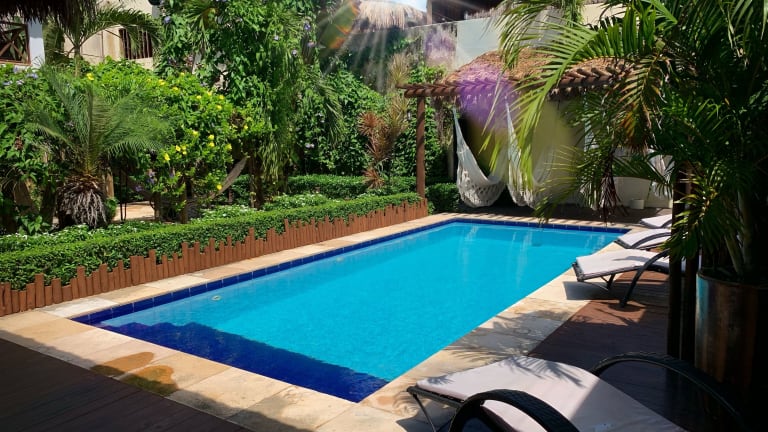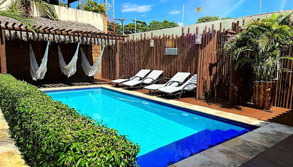 Das Pousada Oasis Paracuru bietet seinen Gästen einen erfrischenden Pool, der ideal zum Entspannen und Abkühlen ist. Der tropische Garten mit Hängematten lädt zum Verweilen ein und bietet einen schönen Ort, um die Natur zu genießen. Auf der 2. Etage gibt es einen Wohnbereich mit Blick auf das Stadtzentrum, der perfekt ist, um den Sonnenuntergang zu beobachten oder sich mit anderen Gästen auszutauschen.