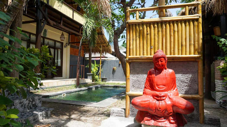 Das Hotel Puri Hondje in Gili Trawangan bietet eine ruhige Lage nur 5 Gehminuten vom Strand entfernt. Mit klimatisierten Zimmern, kostenfreiem Highspeed-WLAN und einem Außenpool bietet das Hotel alles, was Sie für einen entspannten Aufenthalt benötigen. Das freundliche Personal steht Ihnen bei der Organisation von Aktivitäten und Transfers zur Verfügung. In der Nähe gibt es eine Vielzahl von Restaurants, die Sie innerhalb von 5 Gehminuten erreichen können.