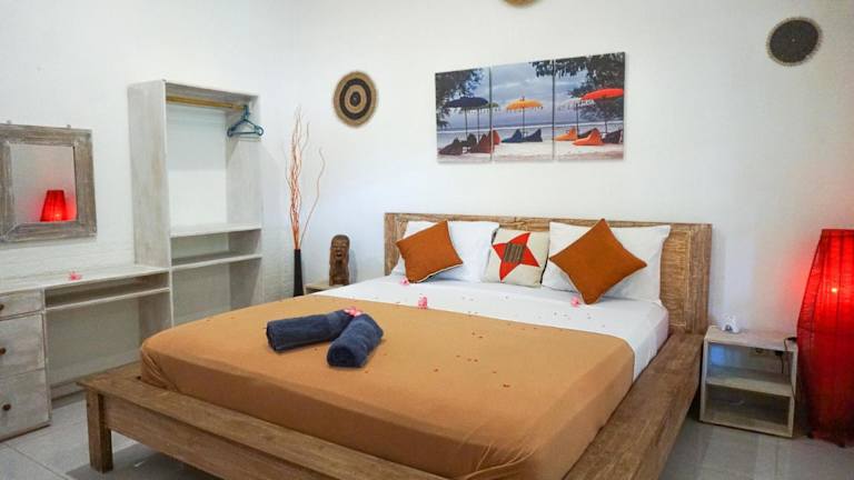 Das Hotel Puri Hondje befindet sich in einer ruhigen Lage in Gili Trawangan, nur 5 Gehminuten vom Strand entfernt. In der Umgebung gibt es eine Vielzahl von Geschäften, Restaurants und Bars, die zu Fuß erreichbar sind. Der Hafen von Trawangan und der örtliche Kunstmarkt sind ebenfalls nur 10 Gehminuten entfernt.