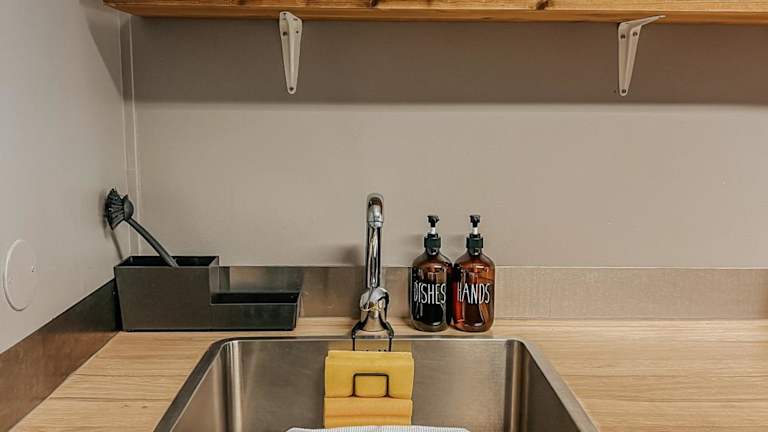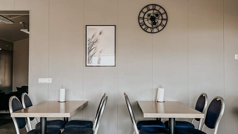Es gibt einen gemeinsamen Bereich mit Kochmöglichkeiten sowie einen Speisebereich, der den Gästen zur Verfügung steht.