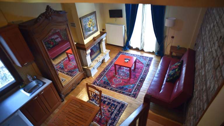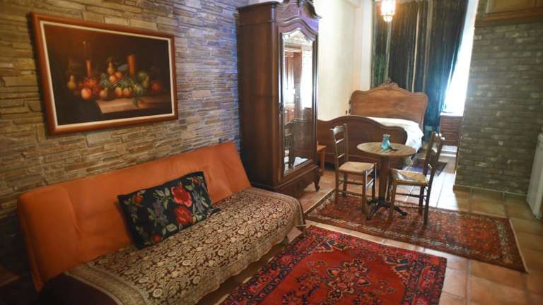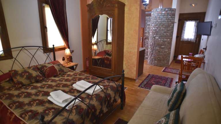 Das Santa Marina Guesthouse bietet gemütliche Studios zur Selbstverpflegung. Jedes Studio ist traditionell eingerichtet und verfügt über Steinmauern und Holzelemente, die ihm einen rustikalen Charme verleihen. Die Studios sind mit einer Küchenzeile, einem Sitzbereich und einem Essbereich ausgestattet, so dass Sie Ihre eigenen Mahlzeiten zubereiten und in Ruhe genießen können. Zur Ausstattung gehören auch ein Kühlschrank, Kochfelder oder ein kleiner Elektrobackofen, ein TV und ein eigenes Badezimmer mit einer Badewanne. Von den zwei Balkonen aus haben Sie einen schönen Blick auf den Garten und den majestätischen Berg Kaimaktsalan.