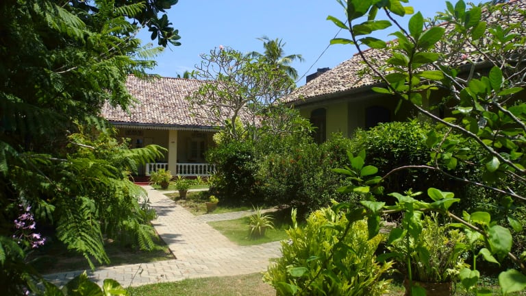 Guesthouse, Gästehaus und Hotel im Kolonialstil in Weligama auf der Tropeninsel Sri Lanka. Strand und Lagune in der Nähe. Das Guesthouse mit offenem Restaurant liegt in einem großen, tropischen Garten. Genießen Sie die Ruhe und beobachten Sie die vielen verschiedenen Tiere im Garten. Das Guesthouse wird familiär geführt, unser Koch bereitet Sri Lanka Küche und internationale Speisen, vor allem Seafood zu. Insgesamt 9 Zimmer mit Bad/WC. Zugang zum Garten von den großen Veranden. Fernsehraum, w-lan und Bibliothek kostenfrei. Wellness mit Ayurveda Massage. Zum Strand mit Korallenriff und Lagune nur 5min. Fußweg. Schwimmen, Schnorcheln, Surfen, Bootfahrten, Whale-watching. Rundreisen auf der Insel Sri Lanka organisieren und planen wir für Sie. Zum Strand von Mirissa nur 5km, nach Galle 15km. Weligama ist eine sehenswerte Kleinstadt direkt an der großen Bucht von Weligama und Mirissa.
