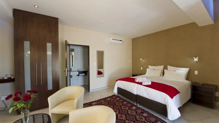 Das Montebello Guesthouse in Windhoek bietet einen komfortablen Aufenthalt in einer ruhigen Umgebung. Mit seinem hervorragenden Restaurant und dem kostenlosen Frühstücksbuffet wird für das leibliche Wohl der Gäste bestens gesorgt. Das freundliche Personal steht Ihnen jederzeit zur Verfügung und die sauberen und klimatisierten Zimmer sorgen für einen angenehmen Aufenthalt. Der Pool ist rund um die Uhr geöffnet und bietet eine willkommene Abkühlung nach einem ereignisreichen Tag. Kostenlose Parkplätze stehen zur Verfügung und die zentrale Lage ermöglicht es, die nahegelegenen Sehenswürdigkeiten leicht zu erreichen.