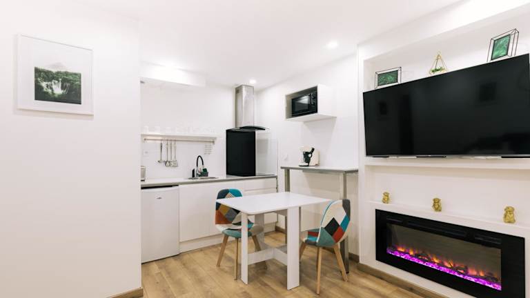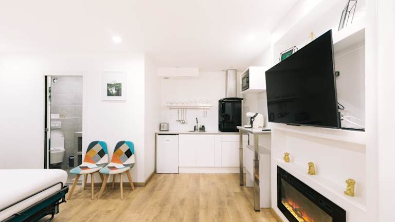 Alle Wohneinheiten sind mit einem TV sowie einer voll ausgestatteten Küche mit einem Kühlschrank, einer Mikrowelle und einer Kaffeemaschine ausgestattet.