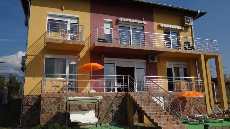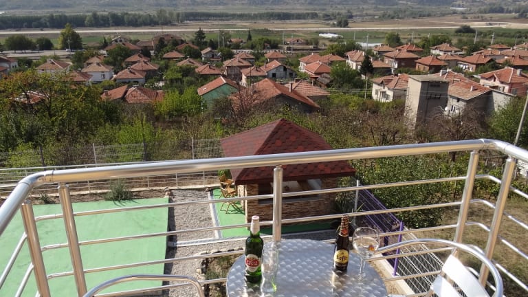Gasthaus Struma Dolinata ist eine gemütliche, moderne 3-Sterne-Unterkunft im ruhigen Dorf Strumyani, 15 km vom Kurort Sandanski (südwestliches Bulgarien) entfernt. Die Nachbarländer Griechenland (30 km) und Mazedonien (FYROM, 50 km) sind ebenfalls ganz in der Nähe, so dass Sie die Möglichkeit haben, 3 Länder zum Preis von 1 zu besuchen! Gäste können einem Doppelzimmer mit einem Queensize-Bett oder einem Zweibettzimmer wählen. Jedes Zimmer verfügt über kostenfreies WLAN, Klimaanlage, einen Kühlschrank mit Minibar, einen Flachbild-TV mit mehr als 200 Kanälen und ein eigenes Badezimmer mit einem WC, einer Dusche und einem Haartrockner. Die Zimmer haben auch Rolläden und einen Balkon (mit einem Tisch und 2 Stühlen), die einen herrliche Aussicht auf das Dorf, das Tal der Struma und Maleshevsko Berg bietet. Es ist schön, draußen im großen Garten zu sitzen, wo man sich auf unterschiedliche Weise entspannen kann: Badminton auf dem Sportplatz spielen, im gemütlichen Pavillon sitzen und den herrlichen Blick auf das Tal und die Berge genießen, während man einen lokalen Wein probiert oder entspannen und sich auf eine Sonnenliege bräunen lassen, während Sie ein Buch lesen oder Ihre Lieblingsmusik hören. Es gibt einen kostenlosen privaten Parkplatz vor dem Haus. Da die Bushaltestelle auf der E79 und der Bahnhof 1 km von der Unterkunft entfernt sind, können Sie einfach mit den öffentlichen Verkehrsmitteln von Sofia kommen. Es gibt einen kleinen Laden auf 300m und 2 Restaurants auf 800m Entfernung von das Gasthaus. Das Dorf hat ein kleines ethnographisches Museum, ein kleines Kunstzentrum, ein Weingut und ein Freibad. Die belgischen Gastgeber sprechen Niederländisch, Englisch, Französisch, Bulgarisch und ein wenig Deutsch. Wir helfen Ihnen gerne bei Fragen zu Ihrem Aufenthalt und lokalen Sehenswürdigkeiten.